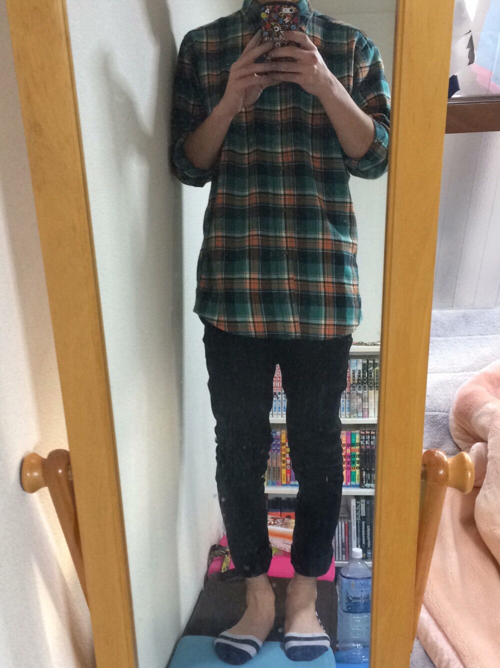 今日はシンプルに! ユニクロコーデ! ちょっと大きめのシャツで ダボッと感だしてみました(^^)