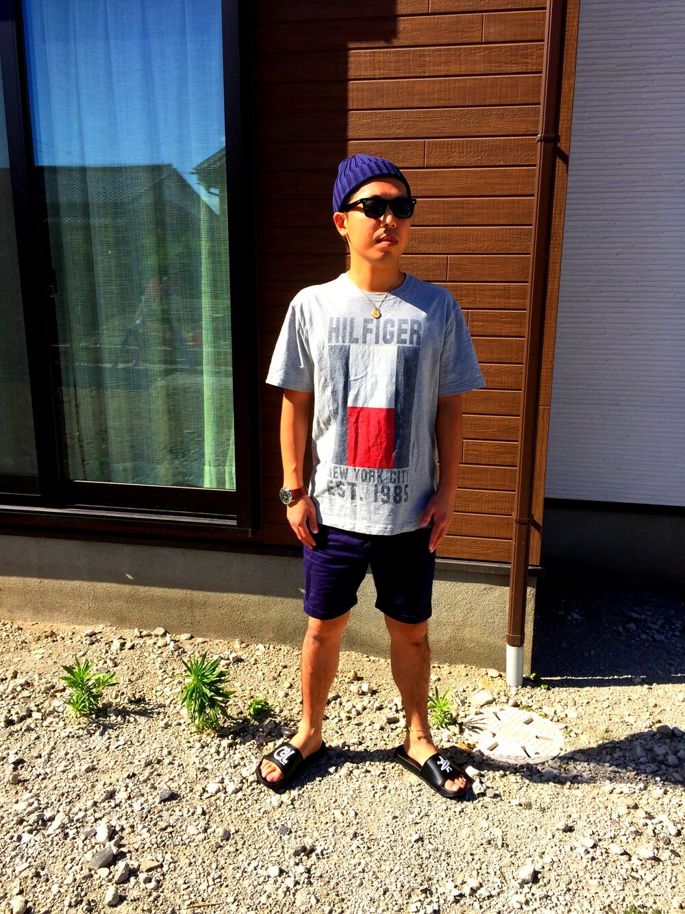 トミーのTシャツをメインに夏っぽくしてみました(^_^)v 今年の夏はこんな感じのラフな格好で海に波乗り行こ〜‼︎(^^)