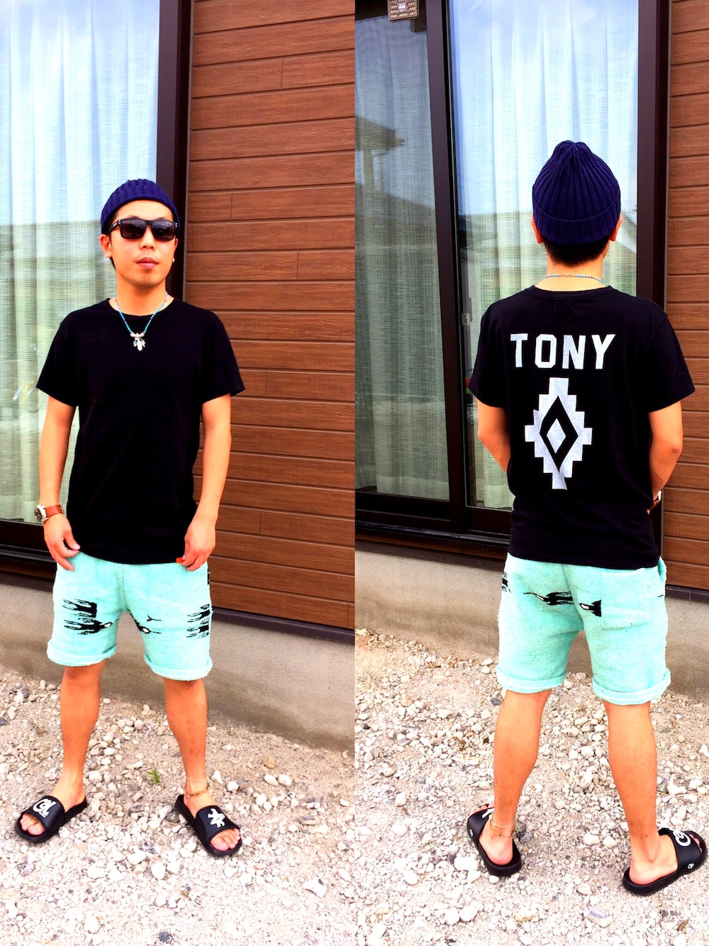 WEGOのラグ素材のショートパンツをメインにしてラフなSURFっぽく着てみました(^_^)v 海上がりに楽な格好です^_^