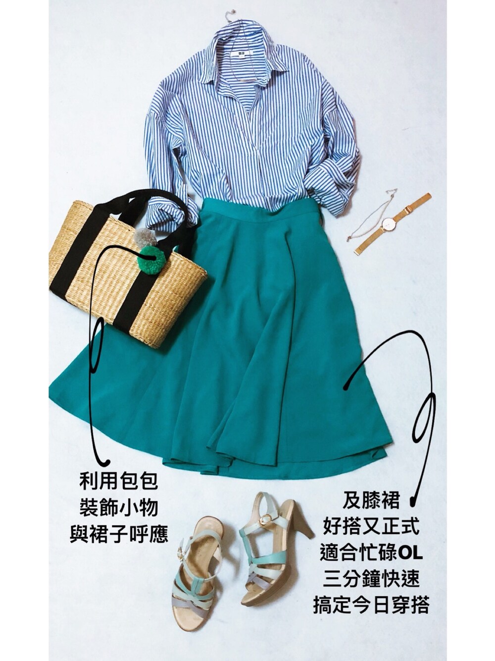5月15日。25-32度。晴 及膝裙是忙錄上班女孩的好朋友 不僅遮住小腹和胖大腿 從襯衫到T恤幾乎什麼都能搭 穿起來氣質也不失正式感 如果你不確定買什麼顏色 今年流行的淺紫色可以考慮一下喔! / 夏天渡假感的藤編包以冬日溫暖感毛線球裝飾 有種衝突的美感 毛線球DIY簡單又便宜 可以製作多種顏色 和衣服搭配 如此一來藤編包可搭配的範圍又更廣了! / 上衣:#UNIQLO 裙子:#MISCHMASCH 鞋子:#AppleNaNa 包包:#淘寶 / #簡約時尚 #平價穿搭 #今天穿什麼 #每日穿搭#coordinate