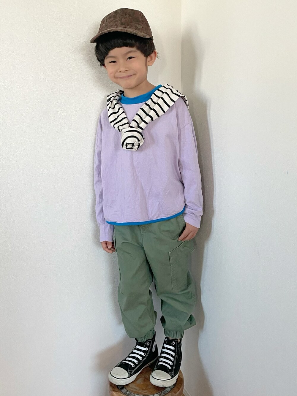 弟です☺︎ 115cm いつもありがとうございます! UNIQLOのカーゴパンツお気に入りすぎて登場しまくりです♡ 昨日の兄とリンクでした☺︎ 今日は始業式ー🐒🐒