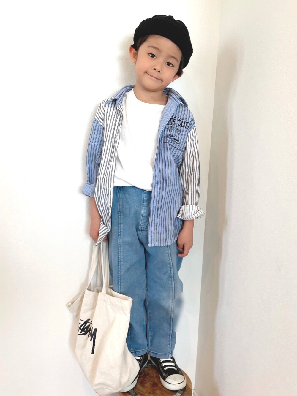 弟です☺︎ 115cm いつもありがとうございます! 外ではシャツ脱いで白Tとデニムで遊んでました🐒