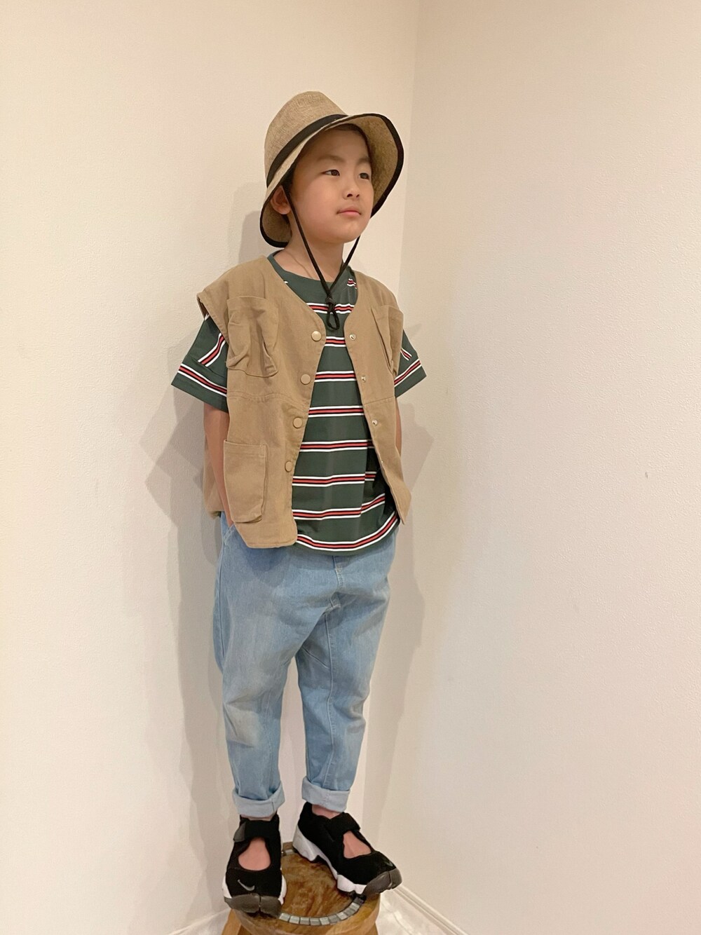 兄です☺︎ 125cm いいね、お気に入り、📁in、フォロー とても嬉しいです! いつもありがとうございます! やはりこのTシャツ好きです♡ 近所の池で釣りしてそう?コーデです🐒