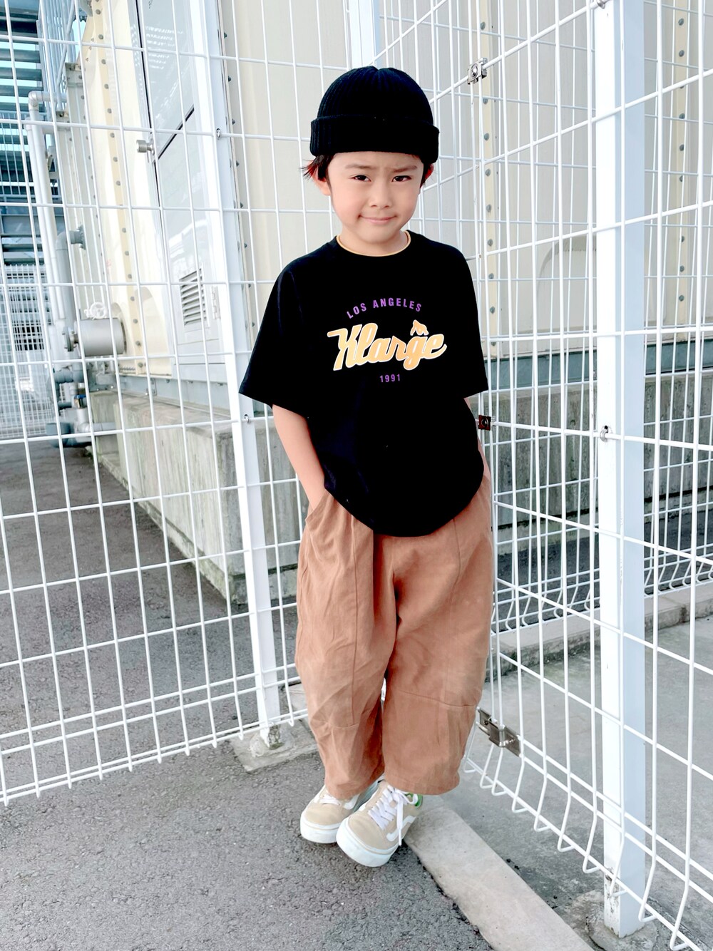 弟です☺︎ 115cm ♡、お気に入り、📁in、フォロー どれもとても嬉しいです! いつもありがとうございます。 眩しかったみたいです🐒 スケボーのスクールに行ってきた時の スケーターコーデです🛹 参加していたキッズの中でも なかなかの初心者でしたが汗だくで がんばっていましたー🏁
