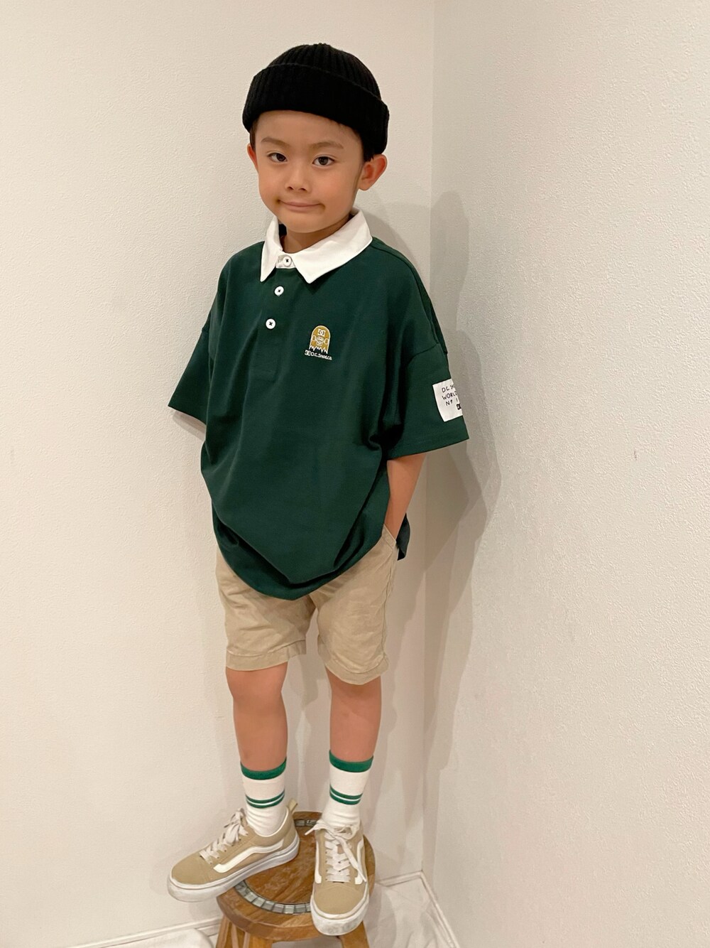 弟です☺︎ 115cm ♡、お気に入り、📁、フォロー どれもとても嬉しいです! いつもありがとうございます。 ポロシャツゲットー🐒 🐒のサイズなくてちょっと大きめですが ビッグシルエットってことで、、、🙈 これ着てまたスケボー頑張ってもらおう🛹