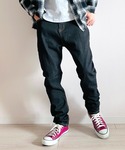 JUNKAPPLEのデニムパンツ「ストレッチスキニーパンツ ちょいサルエルシルエット テーパード デニムパンツ コットンツイル メンズ」を使ったコーディネート