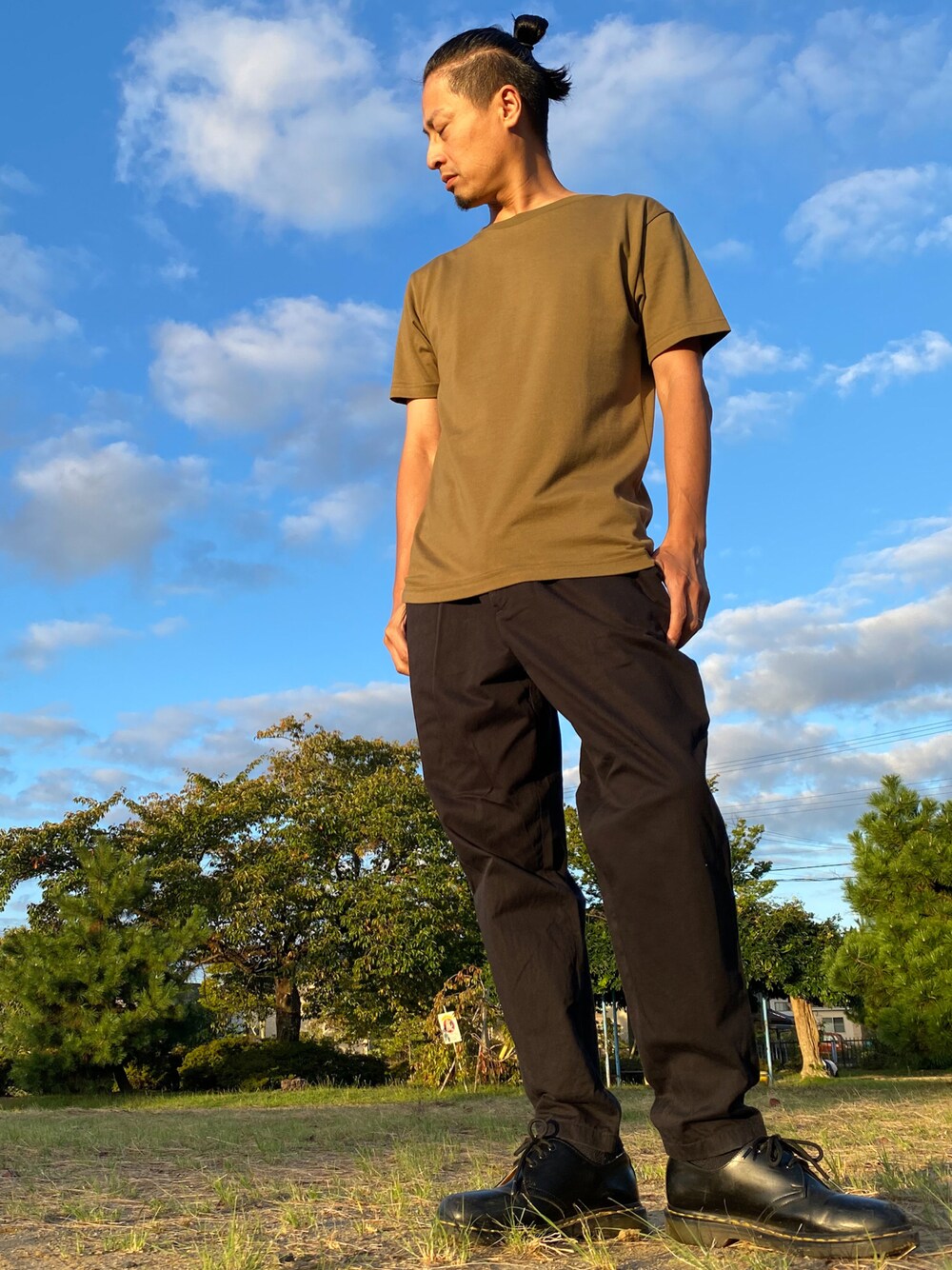 ゆったり首まわり、すっきりシルエットの大人Tシャツ_ブラウンカーキ ¥5,600 送料無料 https://www.junkapple.com 169cm 53kg Mサイズ着用