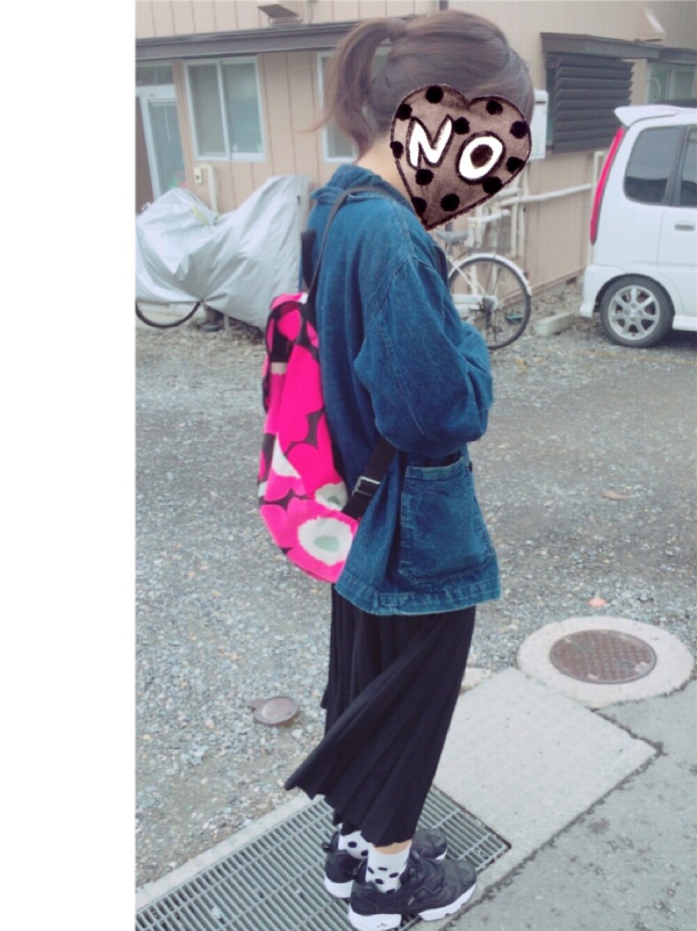 写真うまく撮れるようにしたい〜〜。 基本モノクロコーデになりがち、 マリメッコのリュックで春らしく したつもり!