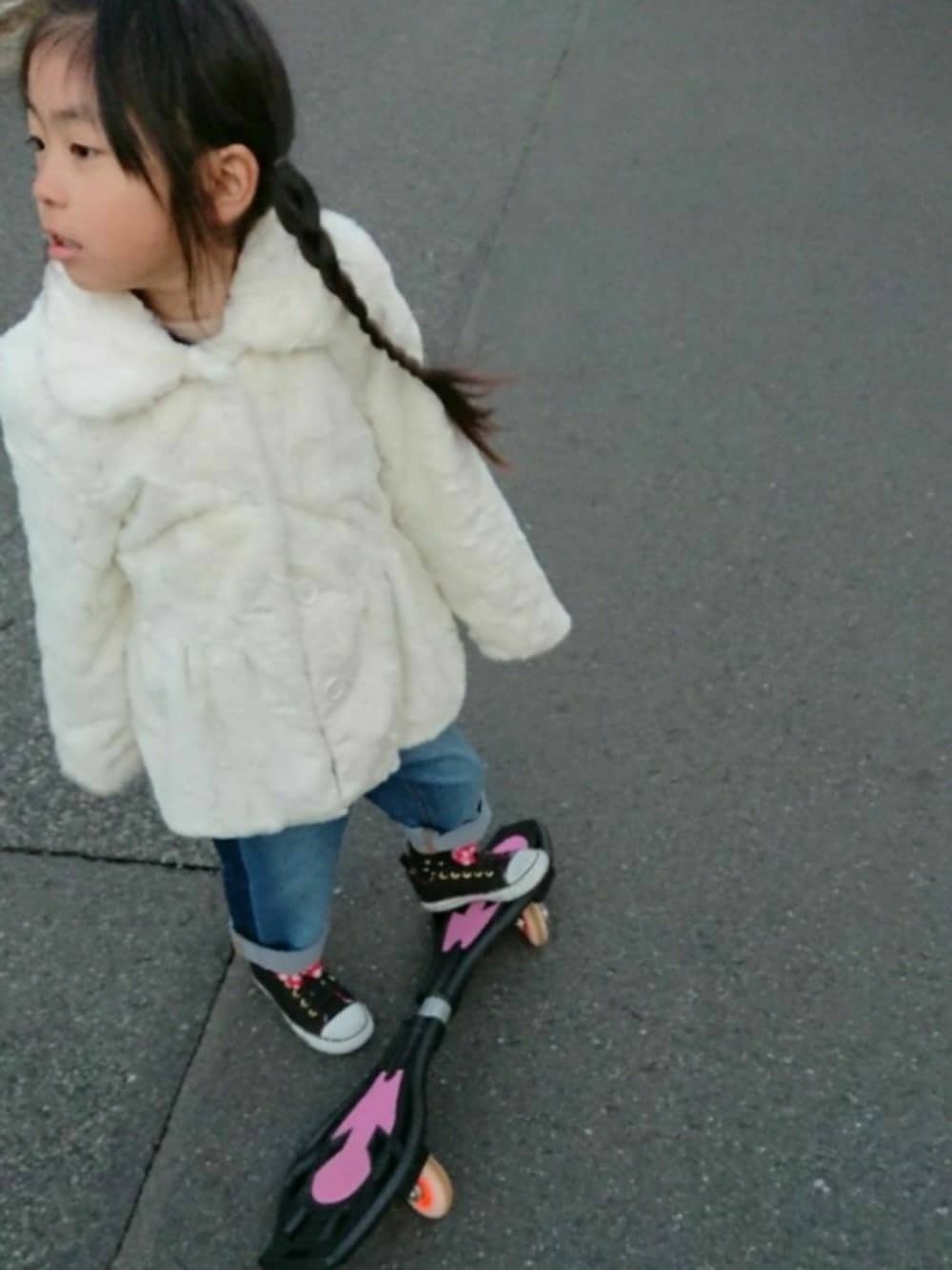 キャサリンコテージより、かっこかわいいデニムパンツが新登場‼️ コンバースのスニーカーとカジュアルなボトムスに、あえてのフェイクファーコートの組み合わせ✨ このデニムパンツ! 加工の際にサイドを縫い合わせてサイド部分だけデニムの元の色を残したという手の込みよう! 小柄な110cmの次女に110で、わりと余裕があったので裾をロールしましたが、これが大正解、とってもバランスよくかわいくなりました✨ これはコーデがいろいろ楽しめそう‼️ かわいいデニムスカートも入荷してます!