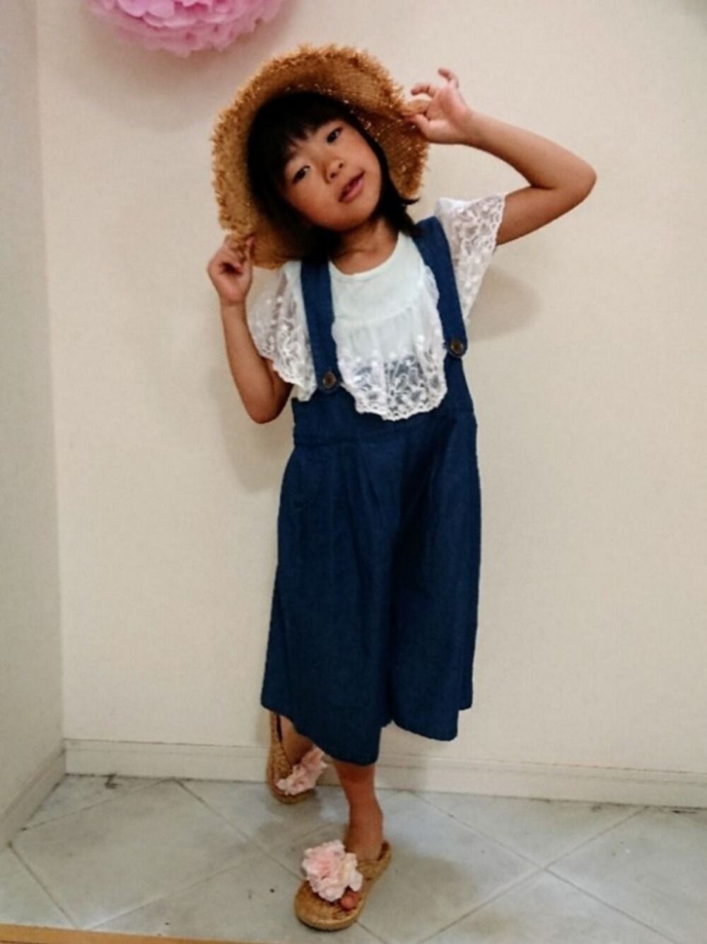 まだまだ暑いですね💦 旬顔アイテム、デニムサロペットガウチョが新登場です‼️ ハイウエスト切替で、タックが入ったきれいめシルエットが楽しめちゃう☺️✨ ワンポイントアクセントの大きめボタンもヴィンテージ感があっていい感じ❤️ 春夏秋3シーズン着られる、ほどよい薄さです。 115cm次女が120着用でこの着用感。 かわいい‼️ この夏ヘビロテしてるレーストップス、合うかなぁ⁉️、と思ってたけどすごくかわいく合いました😃💕