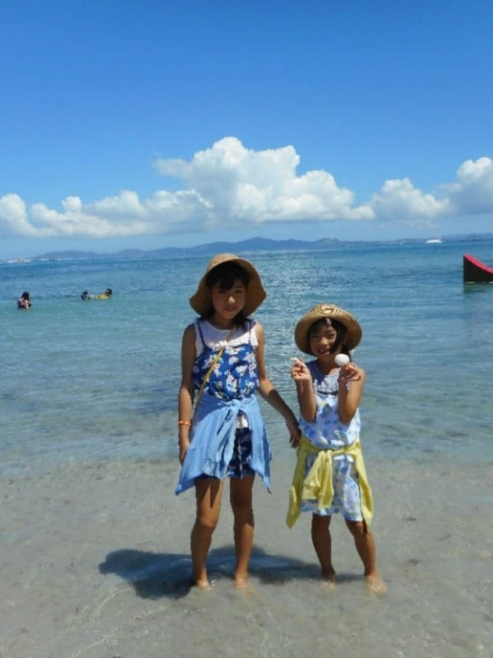 沖縄のきれいな海と空をバックに‼️ キャサリンコテージのひんやり冷感接触が夏に嬉しいセットアップに、レーヨンフリルタンクをイン、UVカットパーカーを合わせて。 夏休み最初の一週間、子供たちはじぃじばぁばと沖縄旅行でした! 私も行きたかったけど、行かないなら行かないなりに自由で静かで平和✨な一週間をすごしてリフレッシュできました~、ママの夏休み😋☀️ 毎日海かプールで泳いで、観光もして、素晴らしい日々だったそう‼️ 次女の名前はまさに沖縄の美しい海が由来、長女は空にちなんでいるので、沖縄で地平線でくっついてるきれいな空と海見ておいでー!、と言ったら、帰ってきた日にくれたお手紙に、「素敵な名前つけてくれてありがとう」って書いてくれました!! 今度は一緒に見ようね!