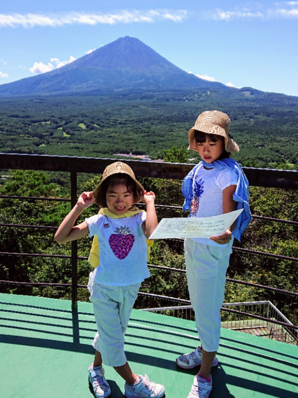 #夏のワントーンコーデ、またまた白をテーマに、キャサリンコテージの後ろフリルがかわいいホワイトパンツに、スパンコールのフルーツモチーフがパッと目をひく外国土産のTシャツを合わせて❤️ トレッキングの日だったので、自然をバックに白が映えたら、と思い‼️ 知人の別荘で快適な夏休みを過ごしています! ここ二日間空がすみわたり、どこから見ても富士山がくっきり✨ トレッキングをしたり、テニスやバスケを楽しんだり、きれいな芝生でキックベースをしたり、夜はBBQにスイカ割りに花火、と毎日てんこ盛り! 帰りたくないっっ‼️🤣