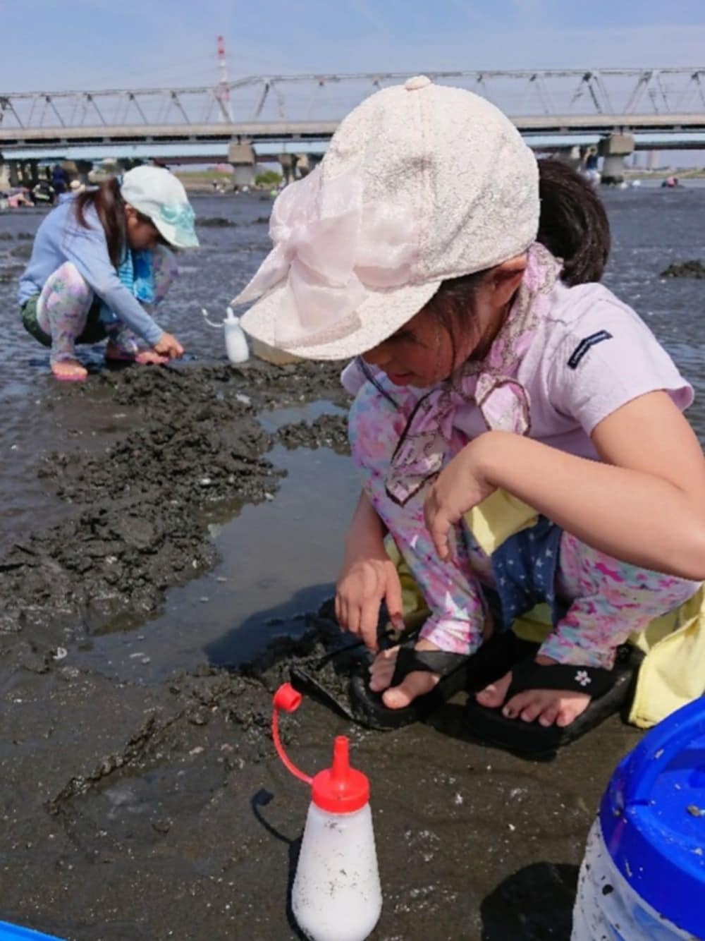 GWは毎年遠出はせず、地元の知る人ぞ知る潮干狩りのメッカでマテガイハントを楽しみます‼️🙌 キャサリンコテージ新作のオーガニックコットンTシャツに、昨年購入のUVカットトレンカ&UVカットパーカーで日焼け対策もバッチリ✨(次女はパーカーすぐ脱いでしまったけど💦) 潮が満ちてくるまでの二時間半ほど夢中で楽しんだけど、日焼け知らず♪ 数年前にマテガイの存在を知ってから、もうアサリやホンビノス貝には目もくれず。砂をかき分けて楕円の穴を見つけたら、そこに塩を投入、すると塩分濃度の変化に反応した細長いマテガイがピョコっと、もぐらたたきのもぐらのように出てくるのがおもしろくて、これまたもぐらたたきのように貝も危険を察するとひっこんでしまうので、その駆け引きもたまらなく楽しいのです♪ この日も大漁、蒸して醤油バターで味付けしたものを食べました😊✨。