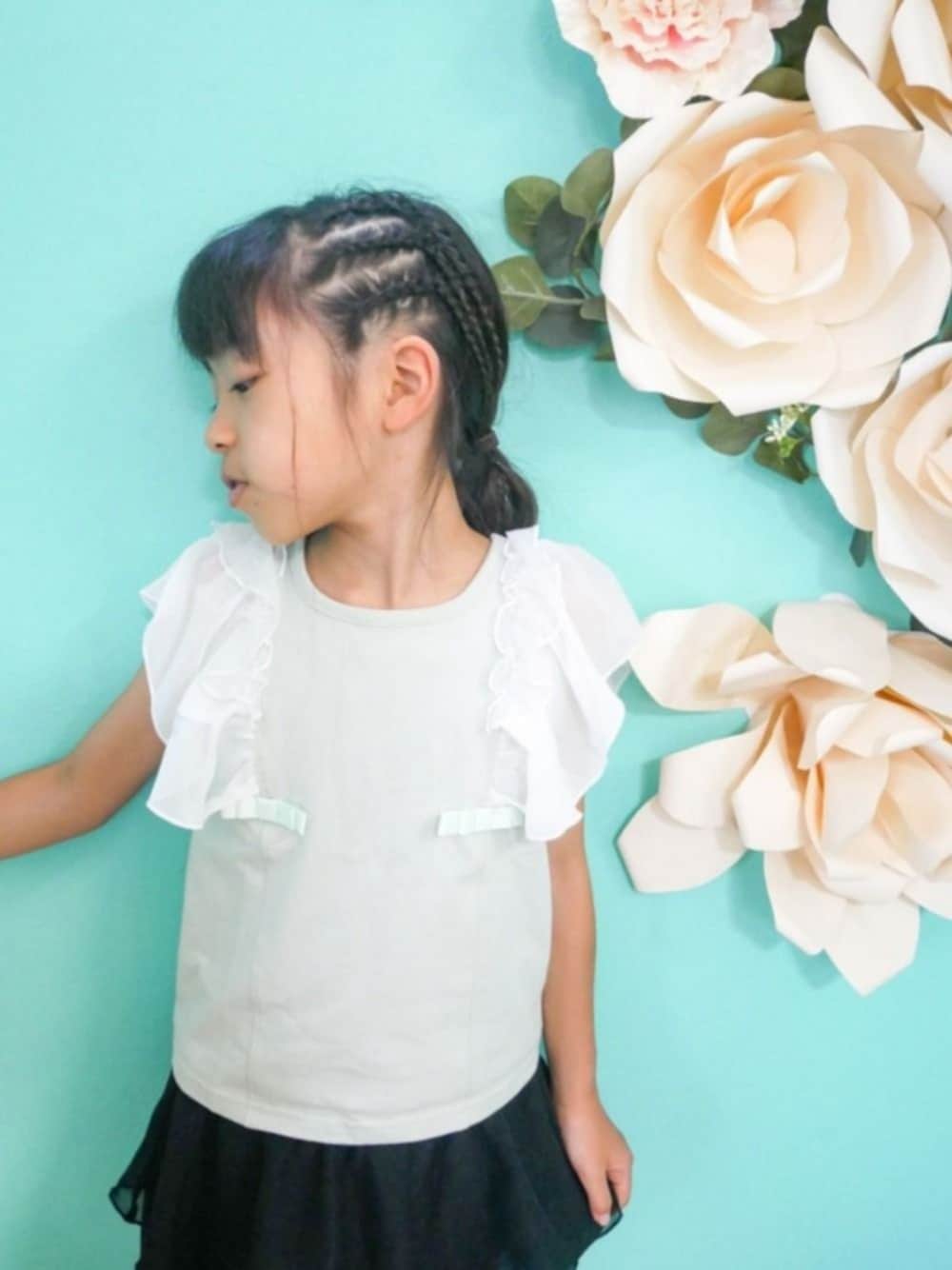 saramimiのTシャツ/カットソー「ショルダーフリルリボントップス」を使ったコーディネート