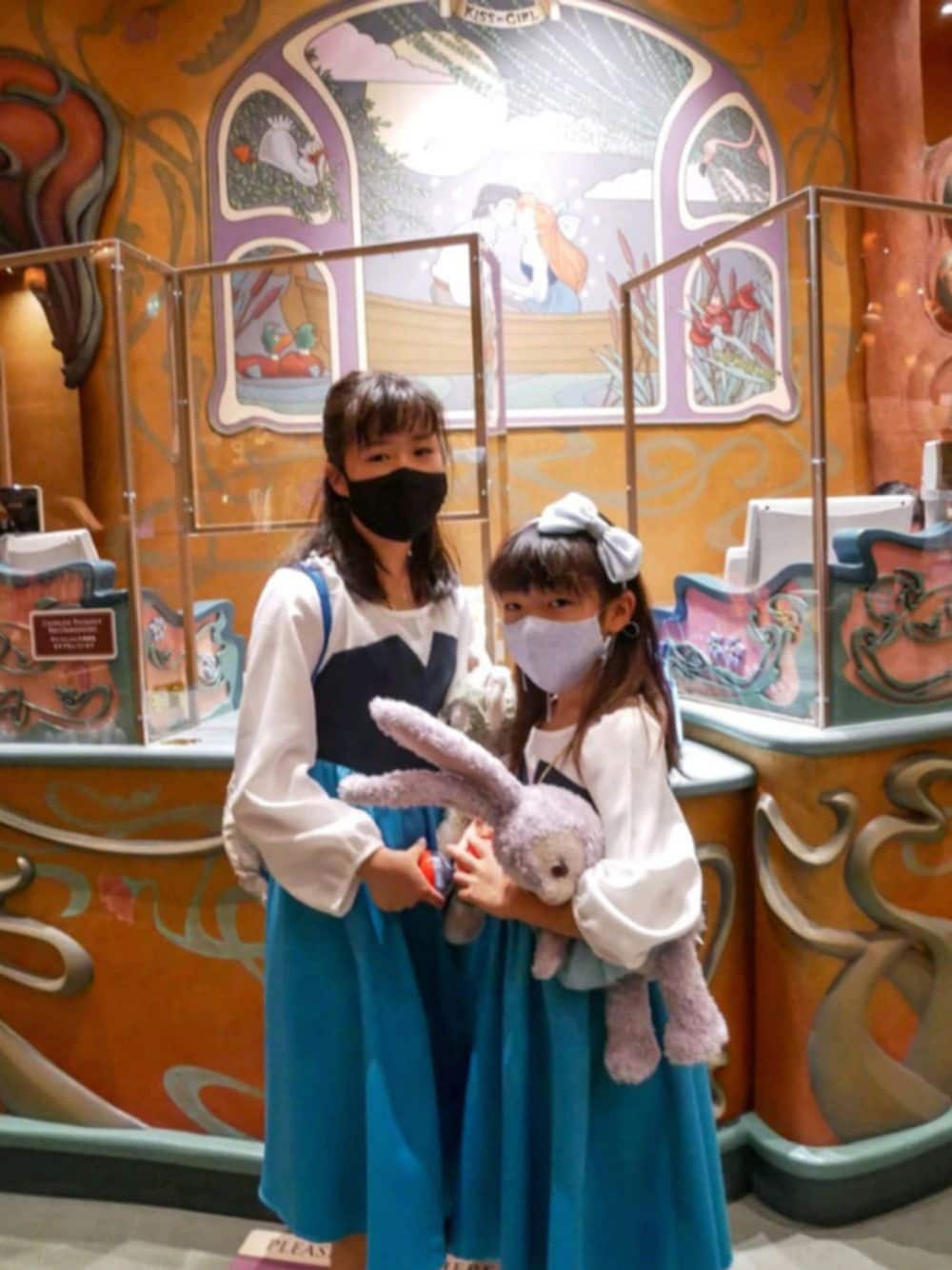おひさしぶりの、ディズニーシー😭❤️❤️ 姉妹で、キスガアリエルコーデで行きました✌️✨ そしたら、アリエルエリアのショップ内に、キスガアリエルの絵画発見👀‼️ 年パス歴十数年で初めて知った😂(あまり興味なかったから?) アリエルコーデにももちろん、キャサリンコテージの【プリンセスのお気に召すままドレスマスク】❢❢ これなら、写真撮るたびに、マスク外して!って言わずとも、むしろマスクしたままが絵になる?! おかげでこの日写真いっぱい撮ったけど、あとから考えたらマスクなしの写真がほぼなかった😅💦