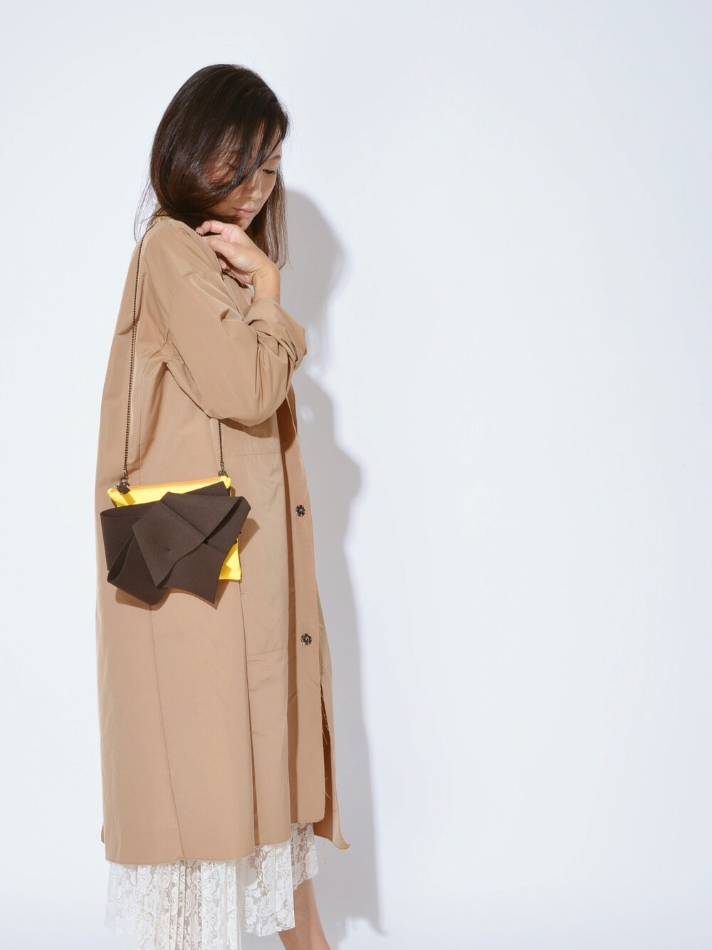 JUNKOのクラッチバッグ「ボンディングリボンクラッチバッグ」を使ったコーディネート