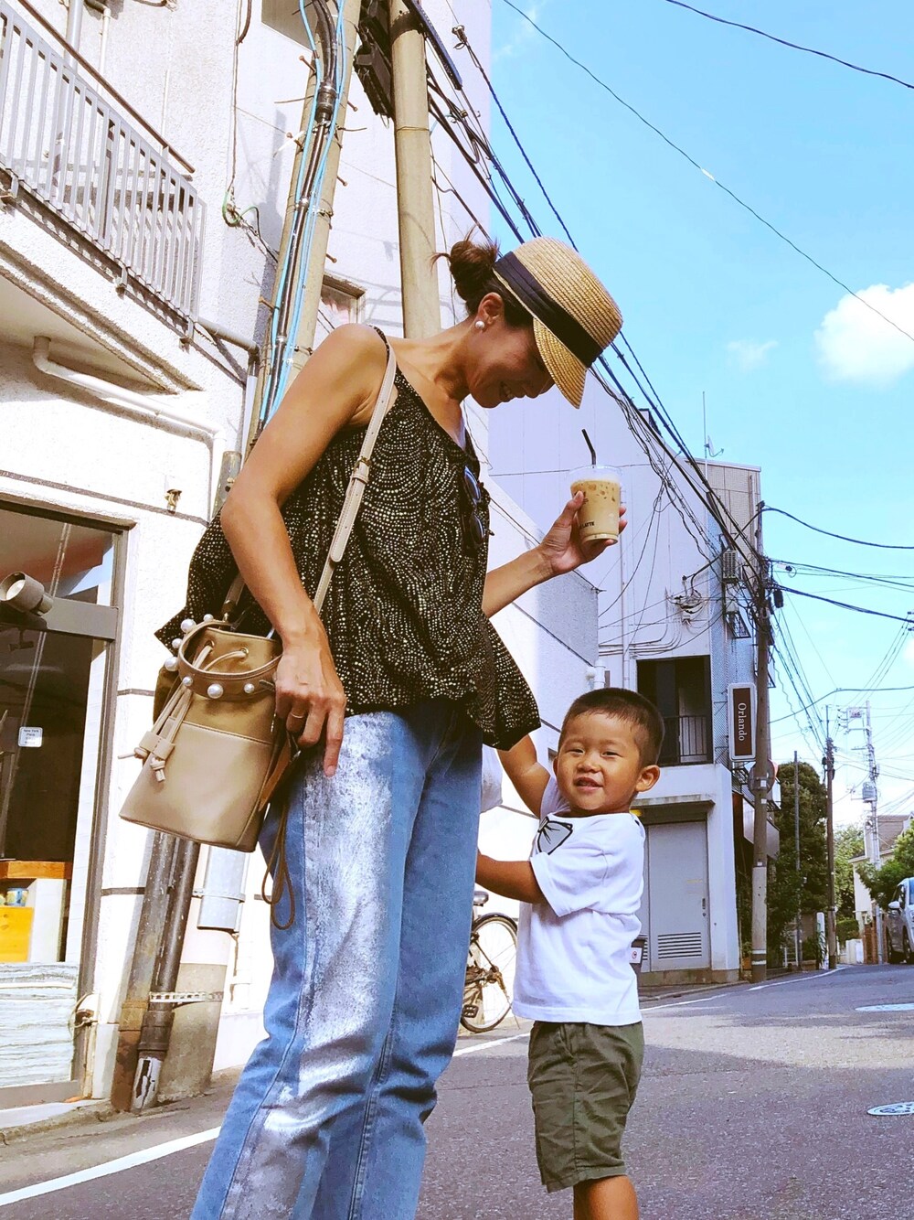 夏コーデ🌺 バッグは秋の新作! ハンドルパールがポイント! カジュアルスタイルとパールの可愛さバランスが好きなコーデ👍