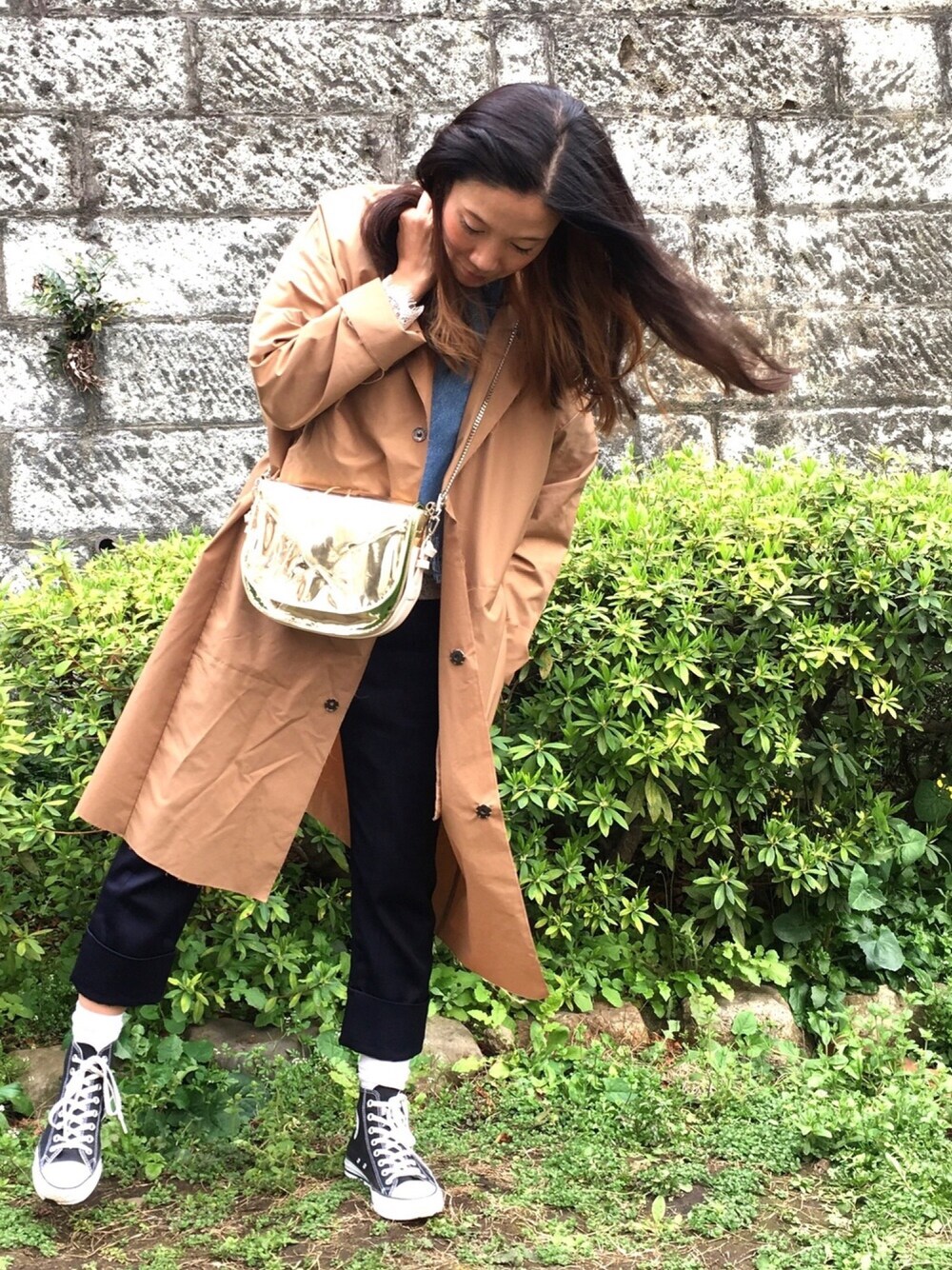 今日はお仕事🌸🌸🌸 お仕事前に息子と公園デート❤️ 時短で動く日はほぼスニーカーコーデ👟 八分丈パンツにソックス&ハイカット👟 そこにオーバーサイズのコートを合わせてレイヤード見せ👀 ボーイズなコーデにゴールドのバッグを合わせて大人カジュアルに✨✨✨