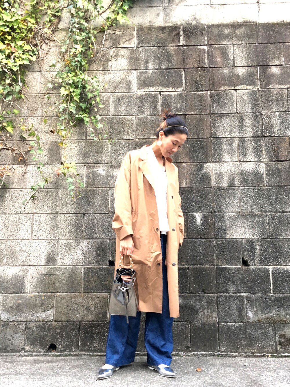 シンプルコーデ🌼🌼🌼 デニムワイドパンツにあえてオーバーサイズのコートをコーデ‼️ 今日は全体的にルーズな気分🌷 SOLPRESAのフラットとSUPERTHANKSのコートはポイントにもなるしデイリー使いにピッタリ‼️