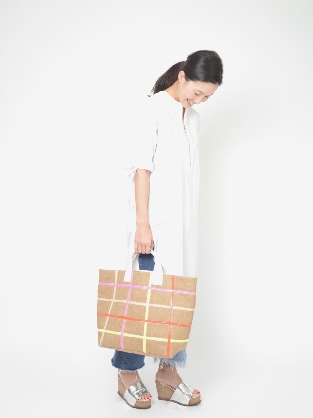 JUNKOのトートバッグ「リネントートバッグ(MIDIUM)」を使ったコーディネート