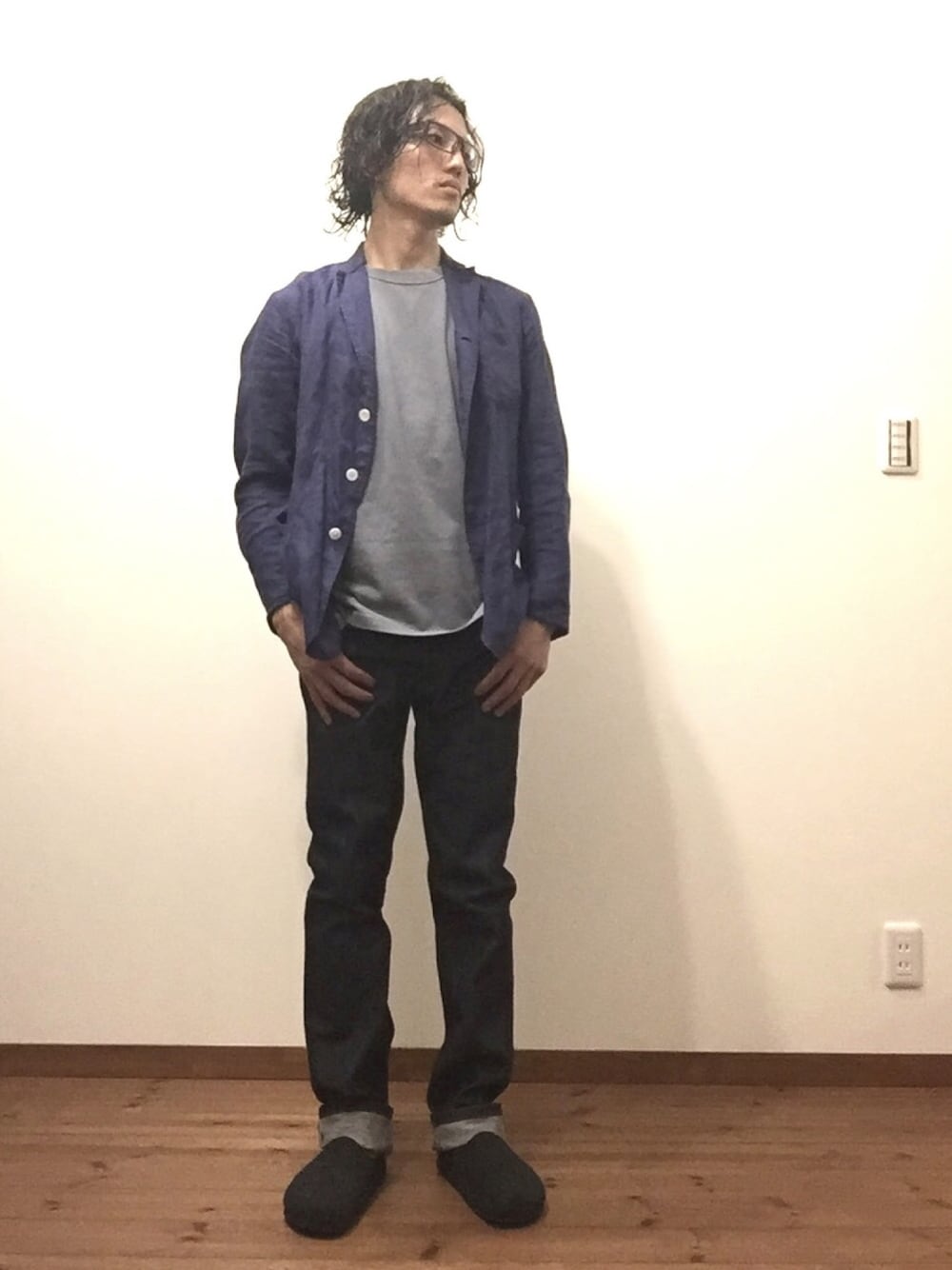 夏の通勤スタイルは出来るだけユル系で。 APCなストレートデニム➕夏は薄手のORCIVALの綿ジャケ。 インナーはUNIQLOの厚手コットンシャツ。 安上がりでも、キレイにしてみました🌟 髪がモサイけどorz