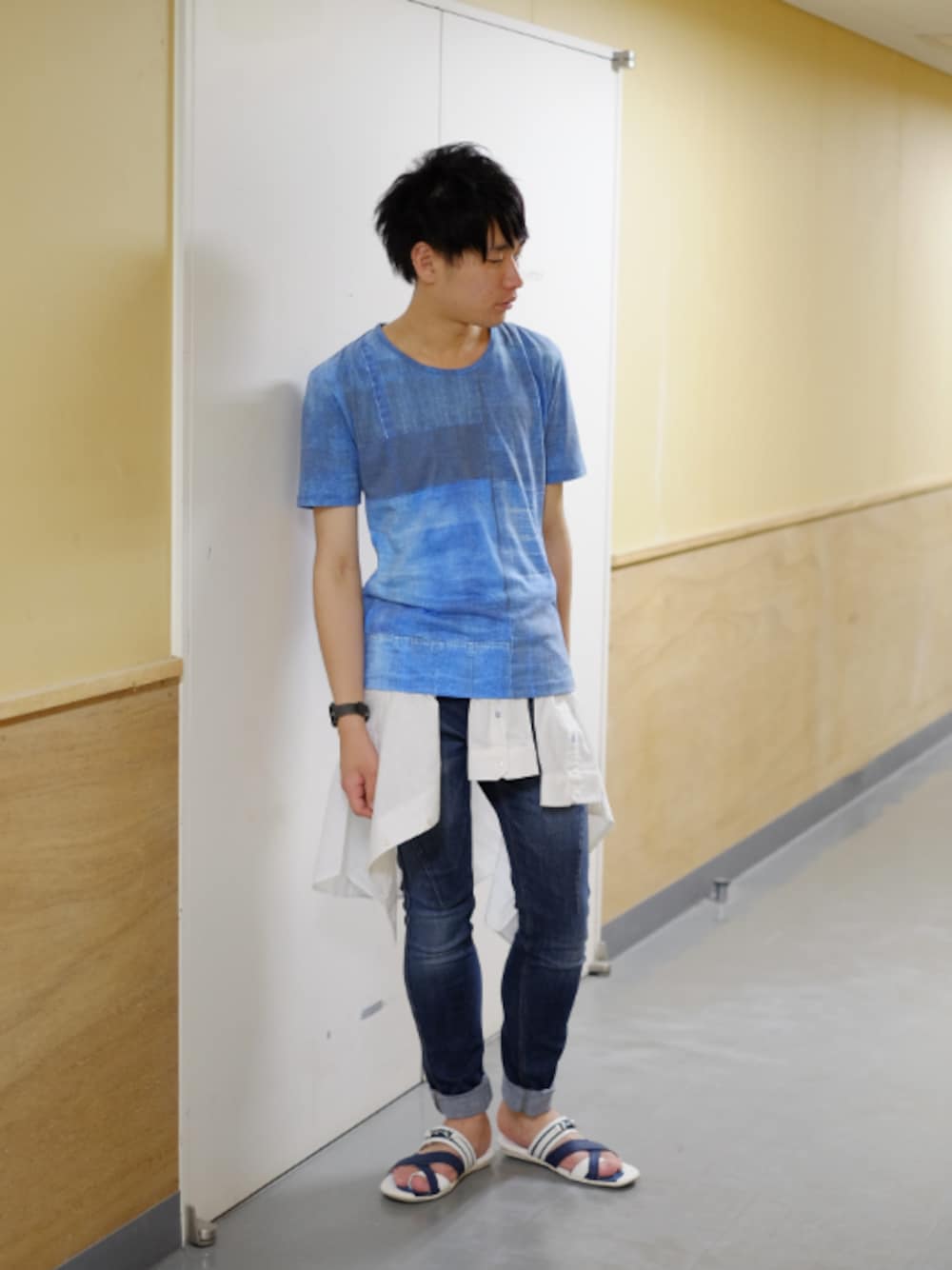 オリナス錦糸町HIDEAWAYSのTシャツ/カットソー「ブロッキングデニムプリントTシャツ」を使ったコーディネート