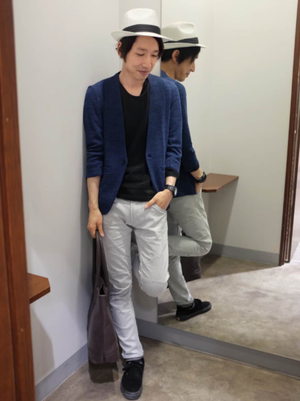 ニューアイテムのノーカラージャケット!新鮮です👍 白ハットで爽やかさをだしてみました👒