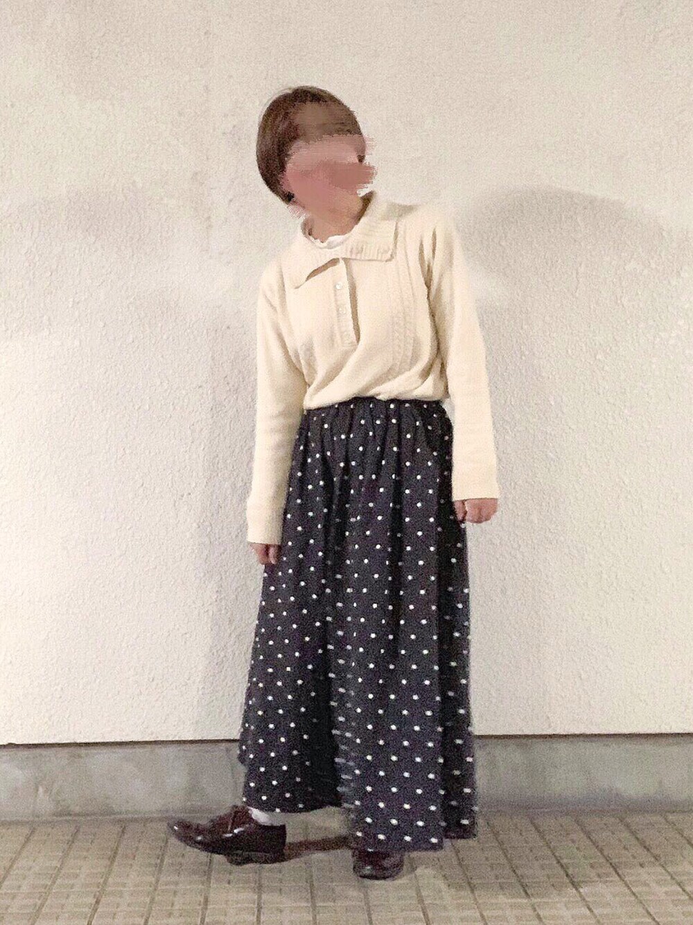 ドットのスカートが大好き 秋冬はもうちょっと投稿して行こうと思います、、、
