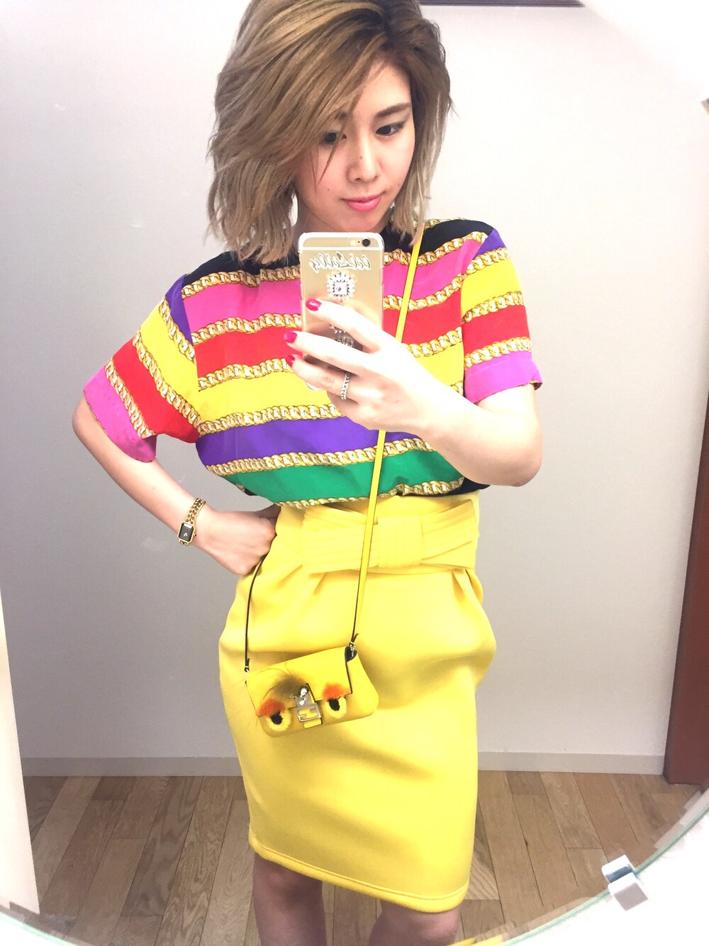 その他のTシャツ/カットソー、イエロー系のショルダーバッグを着用したレディースの夏コーディネートの1枚目の写真