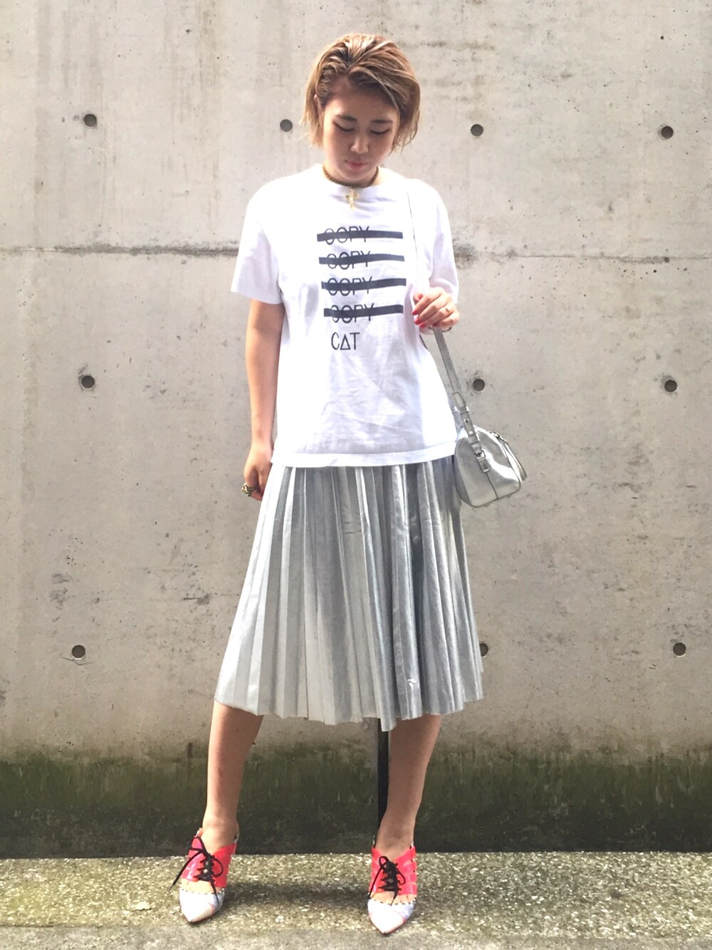 シルバーレザーでスペイシーなストリートミックスコーデ。 ヘアは最近はずーっと、タイトなウェットヘア!