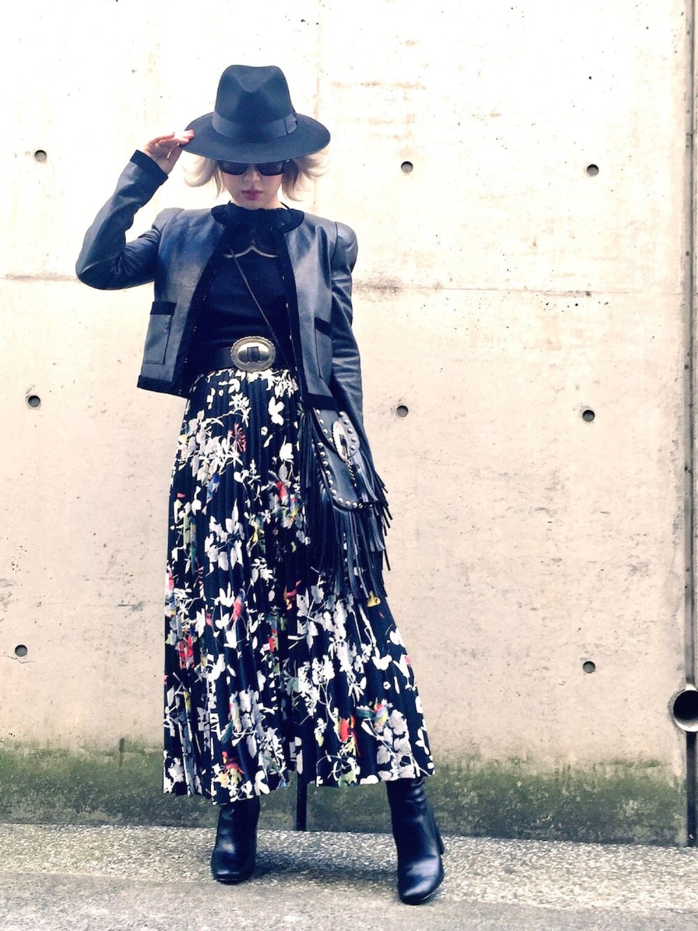 ”annuJ”のバード柄プリーツスカート。この柄で服を作ると決めた時に最初はガウンを考えていたんだけど、サンプルで派手すぎたので需要なさそーと、却下。プリーツにする事で柄が若干わかりずらくなるのと、ハリのある生地なので、スカートはすごくかわいくできた❤️白も黒も両方一番のお気に入りです❤️ annuj.comで購入できます❤️