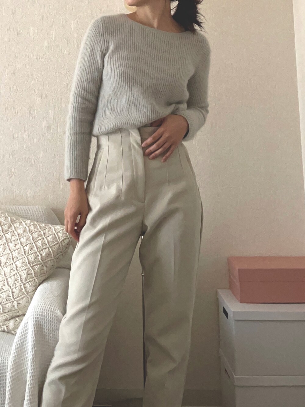 淡色コーデ🤍 大好きなZARAのハイウエストパンツにトップスは昔買ったSpick&Spanのアンゴラニット合わせ! 上質なニットって長く着られるしこれからも大切に着たい☺️
