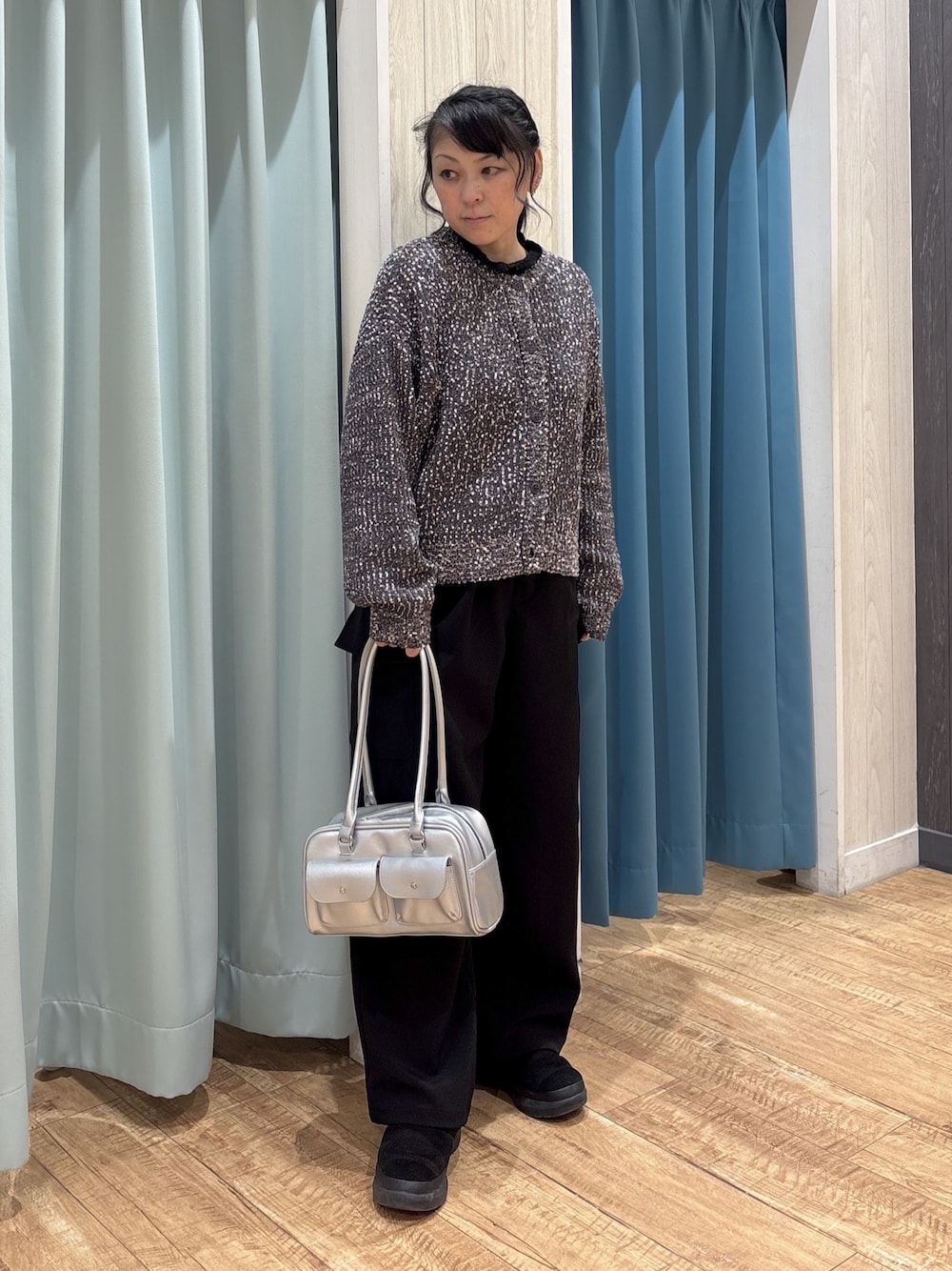 わか(SHOO・LA・RUE)のカーディガン/ボレロ「【洗濯機可/前後2WAY】ぽこぽこニットカーディガン」を使ったコーディネート