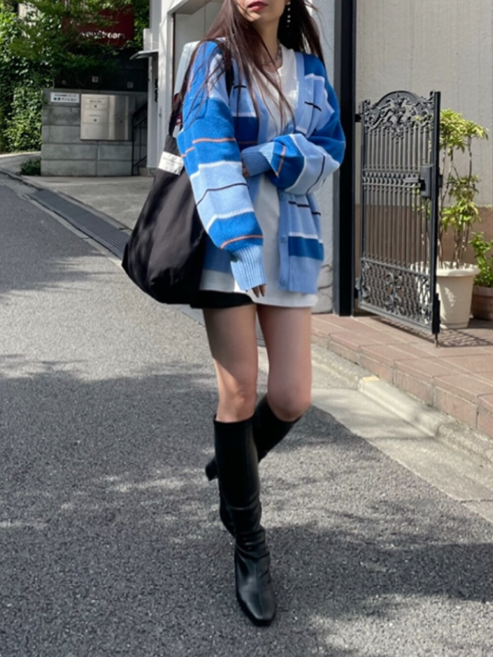柄ガーデはコーディネートのポイントに♡ ビッグシルエット×ロングブーツは秋冬定番コーディネート◎