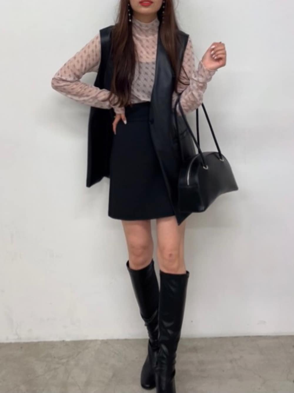 ガーリーコーデ❤️ モノグラム柄のタートルがとてもかわいい♡