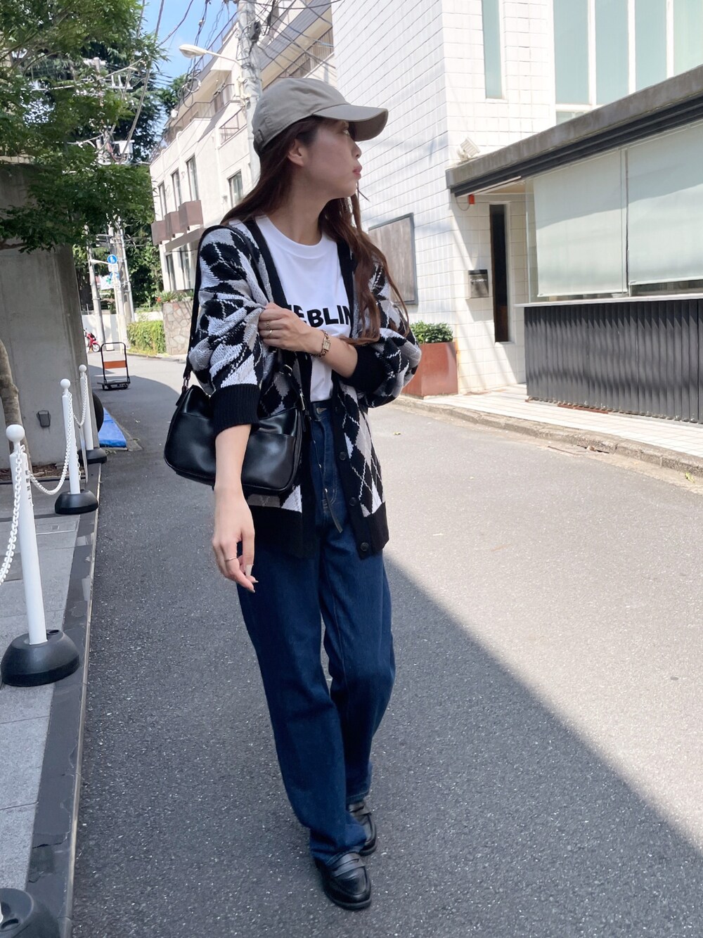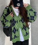 アーガイル柄のカーディガンが 韓国っぽなコーディネート🤍
