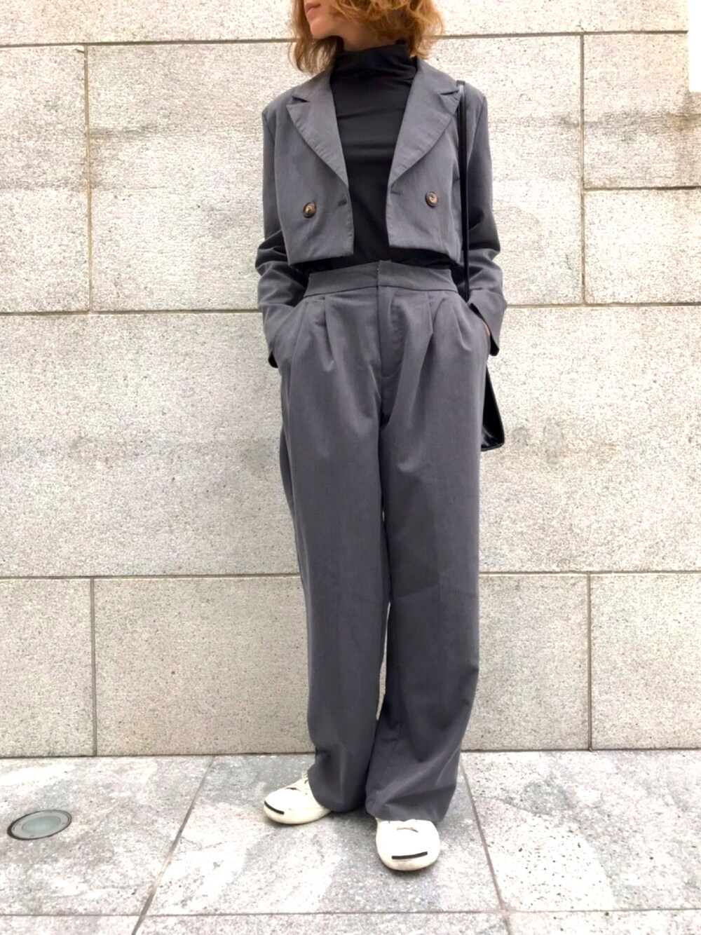 クロップド丈のジャケットのセットアップがめちゃくちゃカッコいい𖢲 靴はスニーカーで外せばかっちりし過ぎずカッコいい女性に𓇬 Instagram ➙ @k.juno_official SHOP Instagram ➙ @serendipity_o.a SerendipityのInstagramショップアカウント