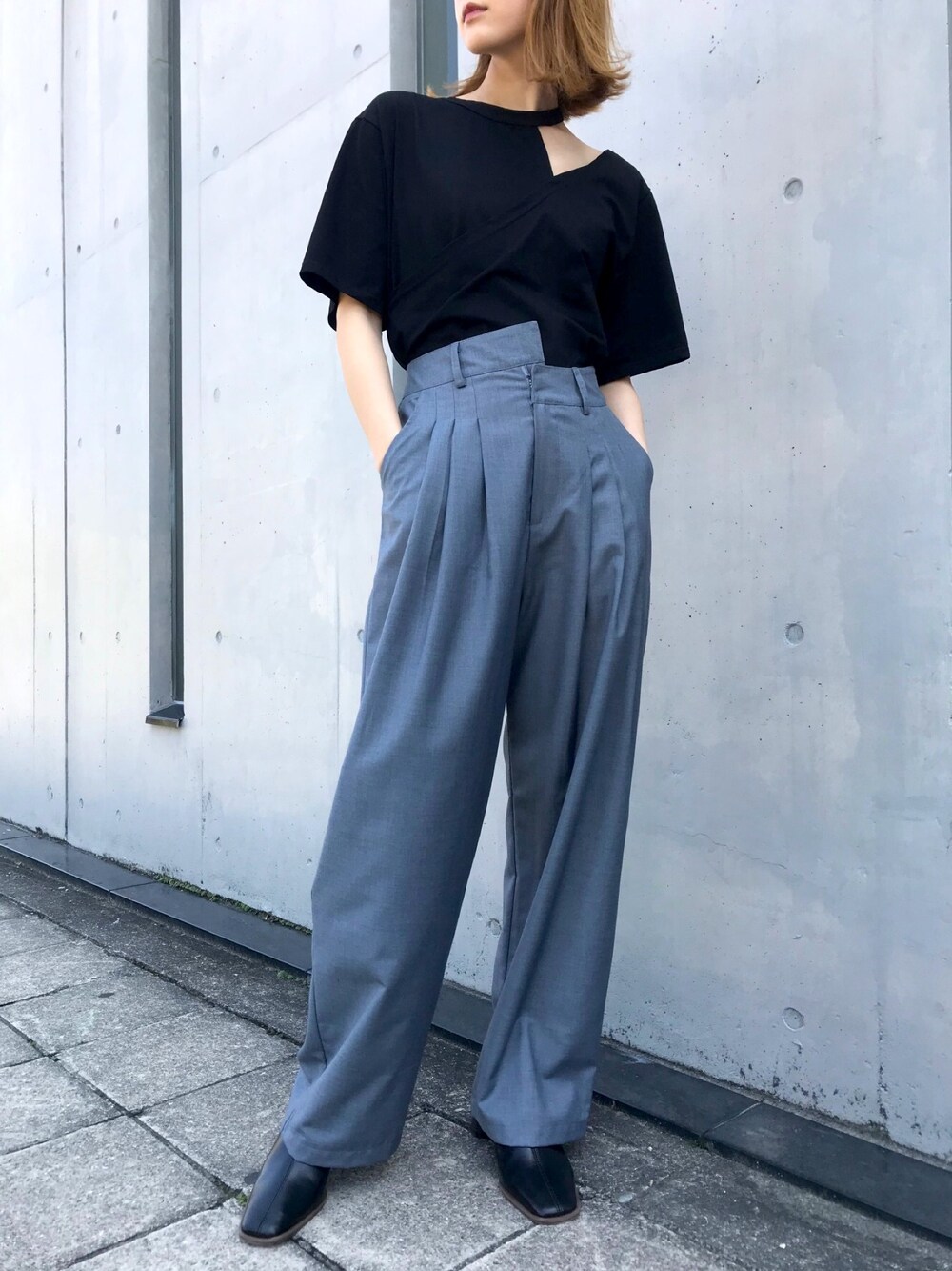 程よいカットラインがお気に入りなTシャツ᯽ パンツのウエスト部分はアシメのデザインでカッコいい1枚𖢲 インスタも見てください𓆸 @serendipity_o.a