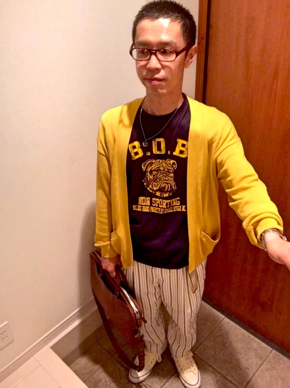 蒸し暑いけど、 もう少しの間、重ね着します。