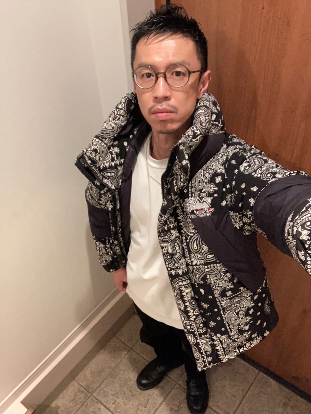 junodart【official】のダウンジャケット/コート「FIRST DOWN/ファーストダウン 別注バンダナショートダウン」を使ったコーディネート