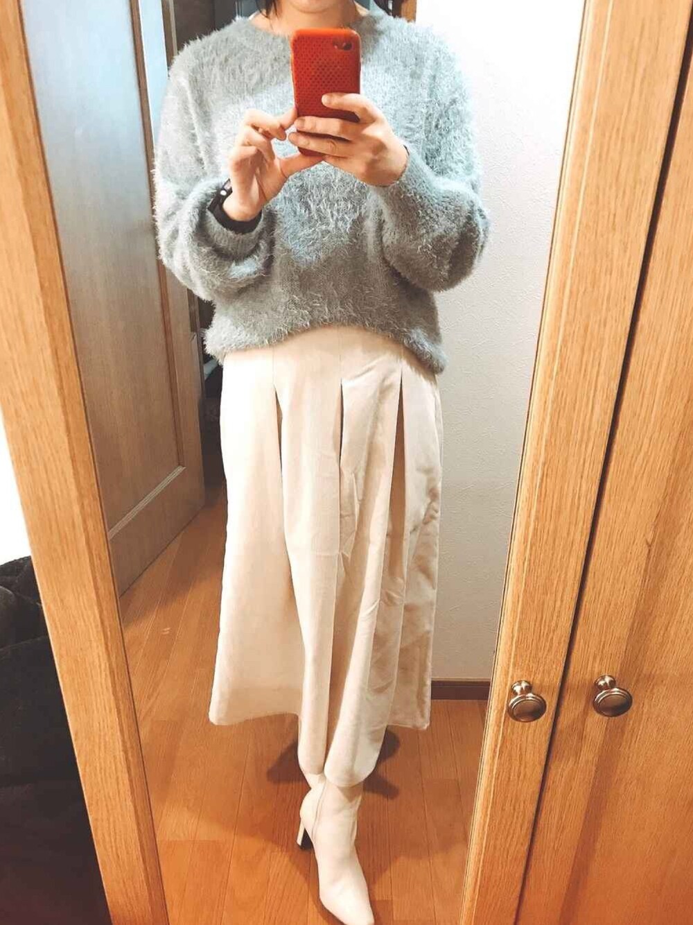 フェザーヤーンパフスリーブセーター 590円に値下がりしてたので苦手色のブルーも購入 白と合わせるとなんか冬らしい☃️
