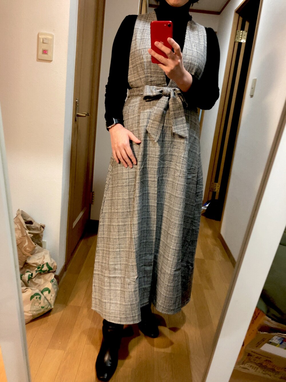 fifth 80%OFFセール戦利品 チェックのジャンパースカートかわいい😍 身幅があるわたしですがなんとかピッタリ入りました。 ジャンパースカートは胸が目立ったりして苦手ですがこれはスッキリ見える! もう少しかっこよく着られるよう少し痩せます🤏