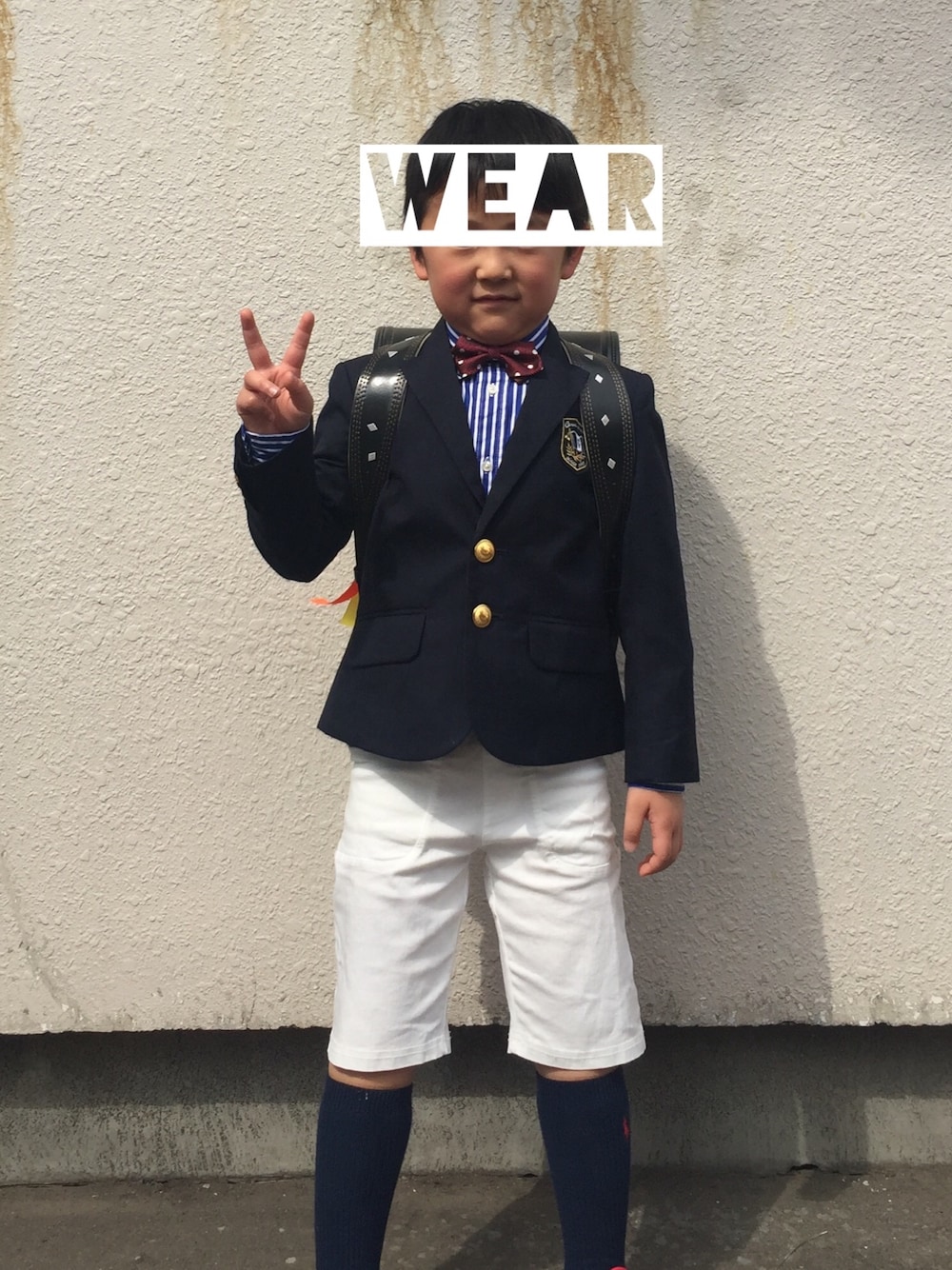 引っ越し、卒園、入学で…バタバタしてました😅今更だけど🌸入学式スタイル🌸 マリン系にしてみたょ。靴下赤でも可愛かったかなぁ〜。