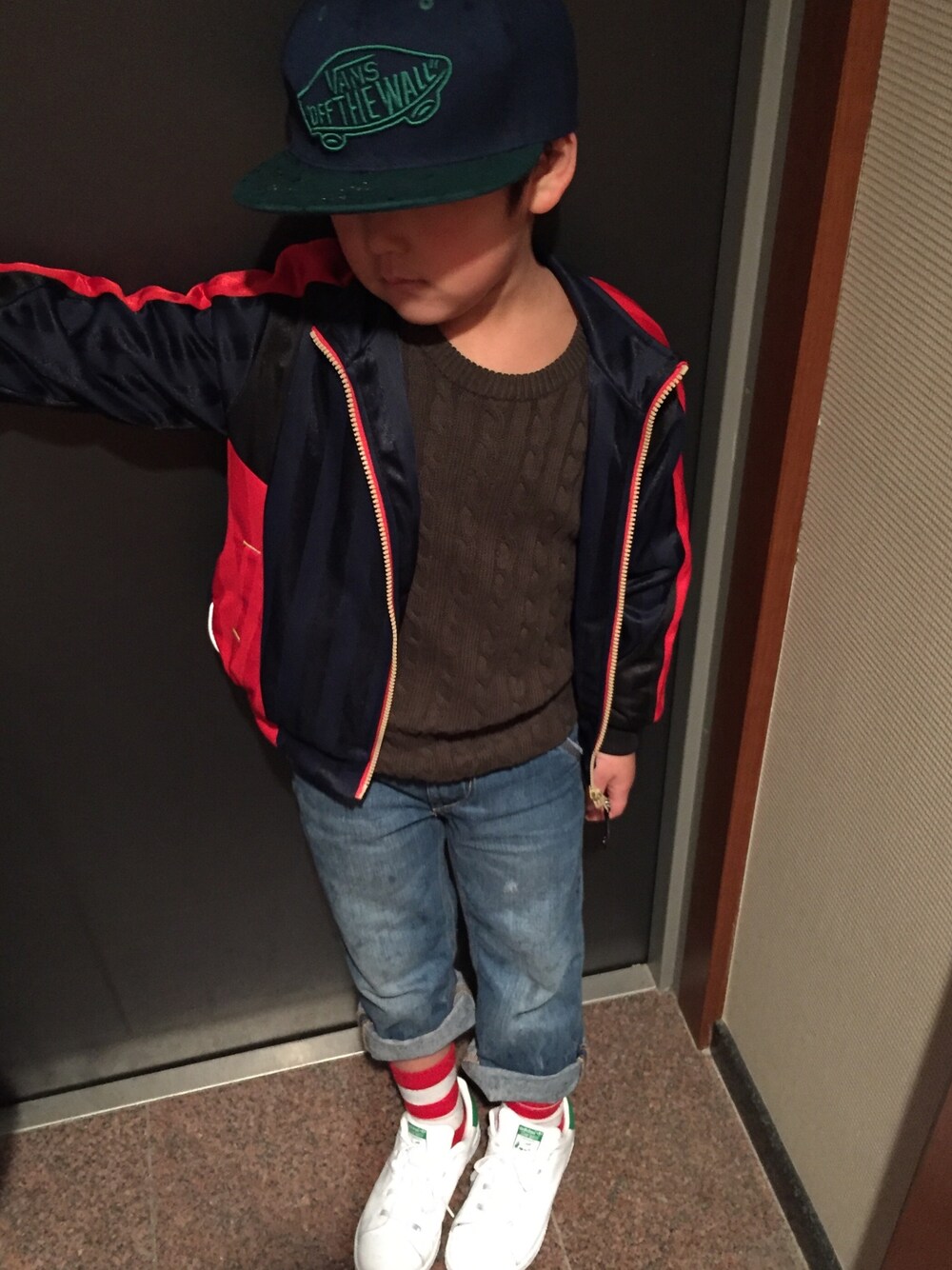 自分でデニムまくってて… まくり過ぎじゃない?って思ったけど 意外とソックスとスニーカーが見えて めんこかった❤️ スニーカーのこと スタンスミスおじさんって呼んでる😅