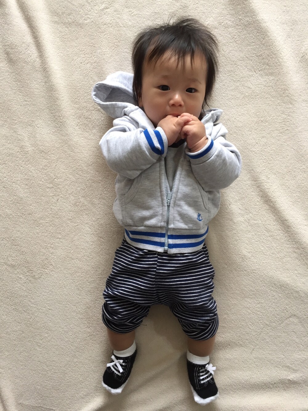 「まだ歩けないのに、靴はいてる〜🎶」 靴下が可愛いくて、街なかで、電車の中で、 よく声を掛けて頂けます♪ 6日分の色があり 服に合わせて選べるヘビロテアイテムです〜♡ ちゃんと、靴ヒモもついてる。 本人も気に入って、よくヒモをしゃぶってますw
