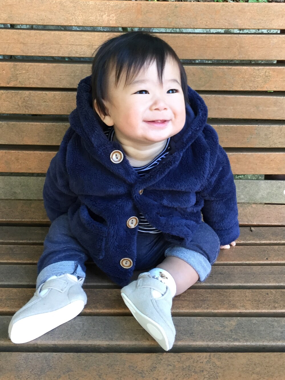 立っちは出来ても、まだ歩いてませんが、ファーストシューズ履かせました。 先輩ママに、歩き始めの時に靴履き慣れていないとなかなか履いてくれないと聞きましたから!