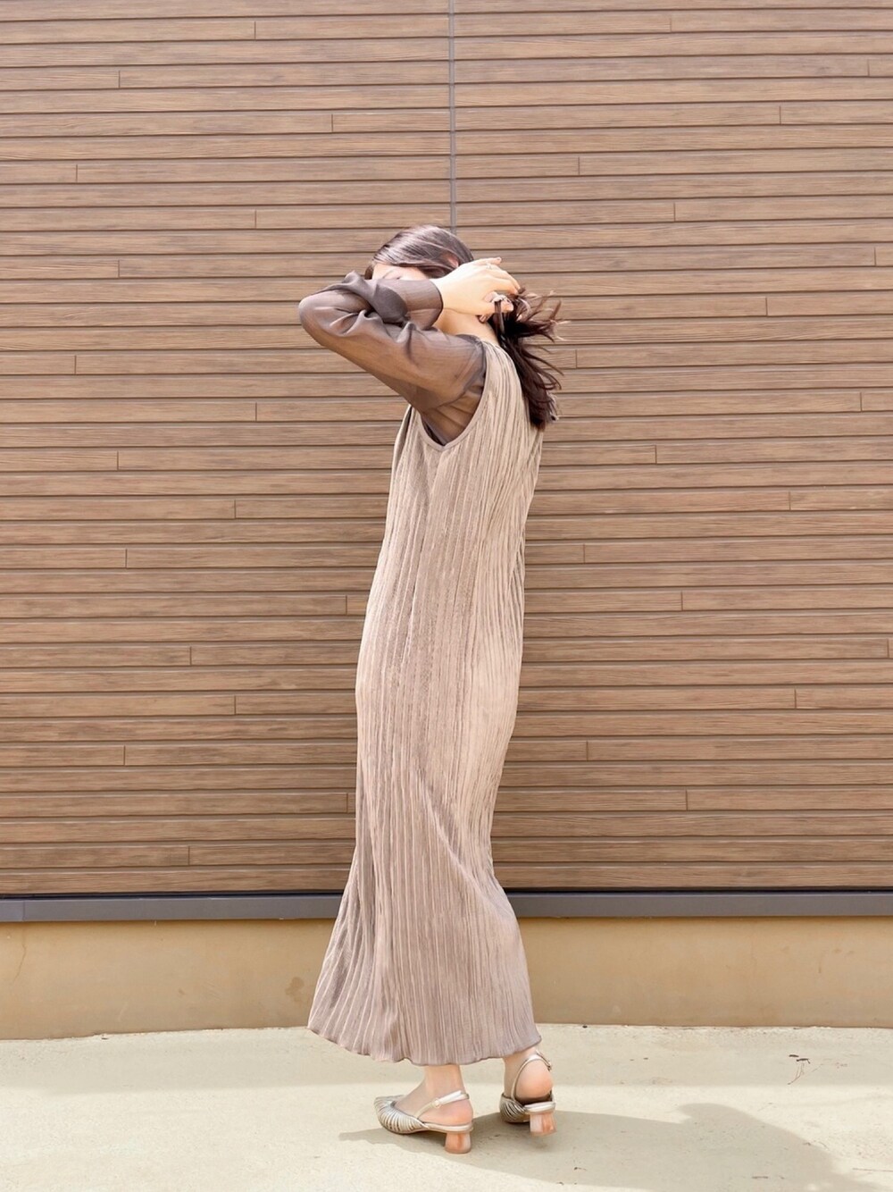 junosunsetのワンピース「サテンノースリーブワッシャーワンピース(袖なし)」を使ったコーディネート