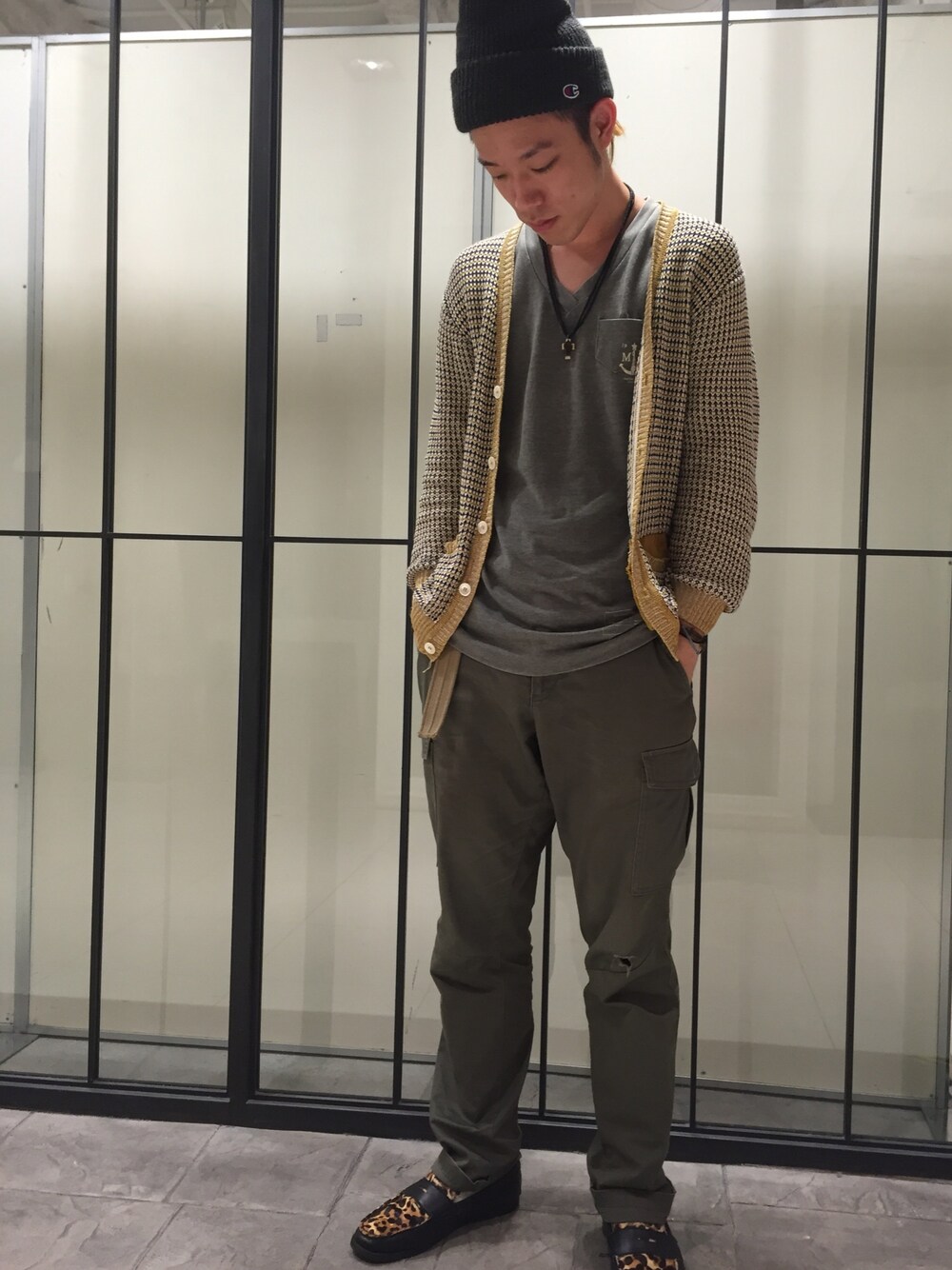 カーディガンのシルエットが今っぽくなくてお気に入りです!決めすぎない感じで(笑) corsiniっていうイタリア生まれのブランドです! クオリティ高めなんで質にこだわる人は是非探してみてください(^ ^) チャンピオンのニット帽は肉厚で形綺麗に出るんでオススメです!