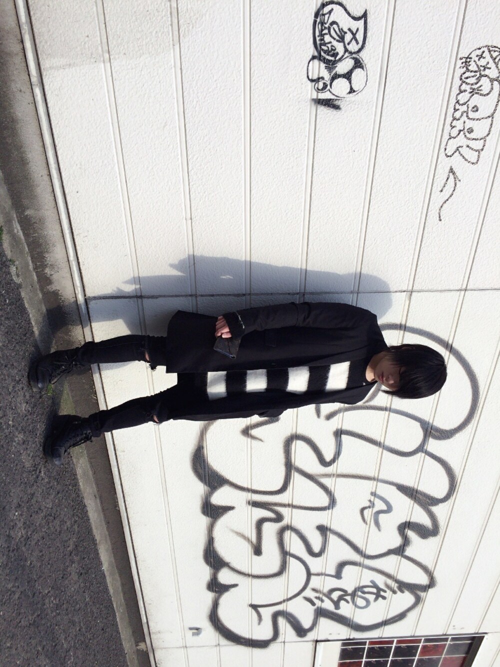 身長が小さいのでヒールブーツ! 足も細くみえるので。 ボーダーニットとチェスターコートを あわせてスタイル良く見せました (><)