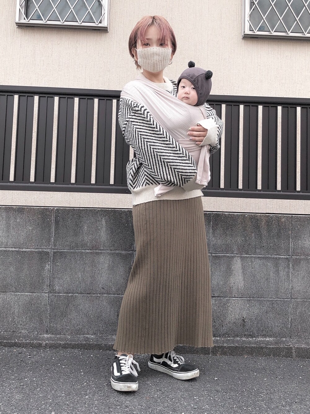 ヘリンボーンのニット着回し🖤 顔は気にしないでください🙇🏻笑
